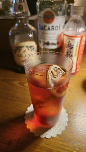 카시스 리큐어의 화사하고 스윗한 풍미에 고소하고 쌉쌉한 맛의 우롱 조합.