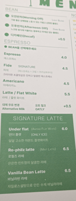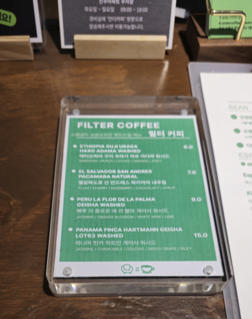 스페셜티 싱글오리진 핸드드립 메뉴