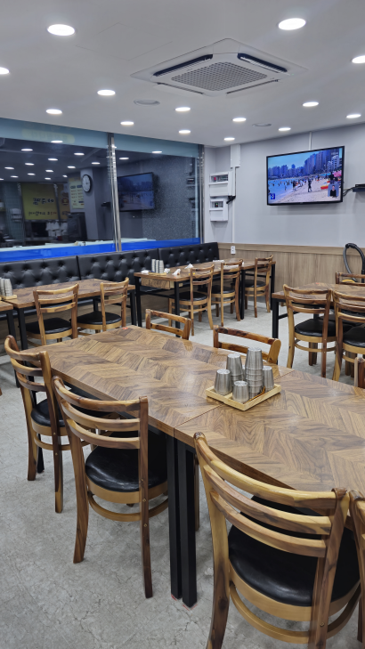 깔끔한 건물안에 심플한 가게 내부 디자인.