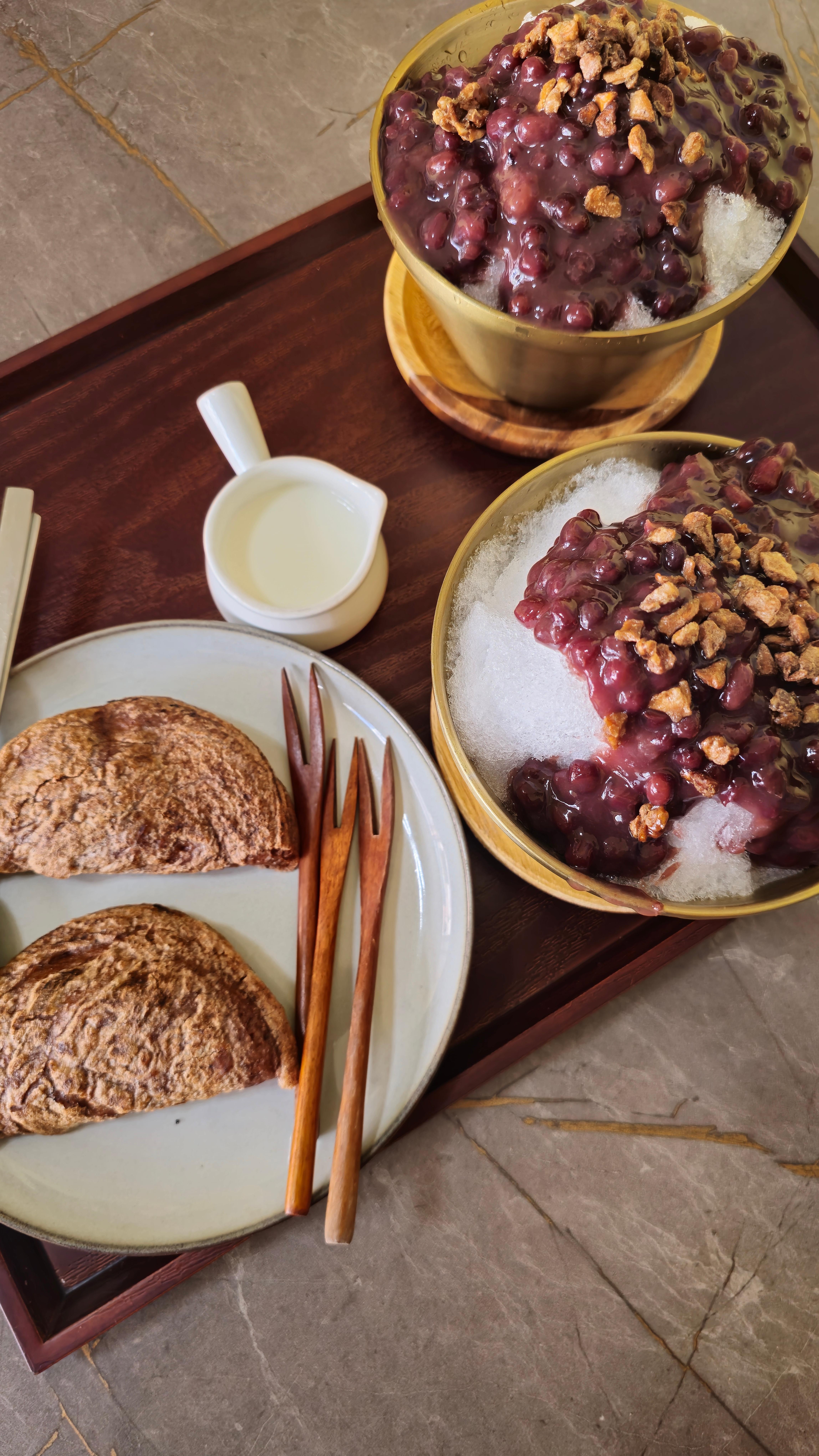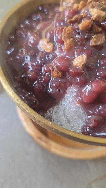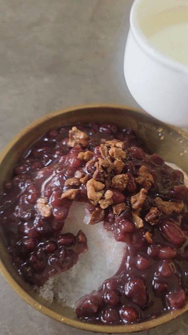 팥빙수에서 견과류와 팥의 조합이 좋았다. 가끔씩 십히는 호두의 식감이 팥빙수를 심심하지 않게 만들었다.
