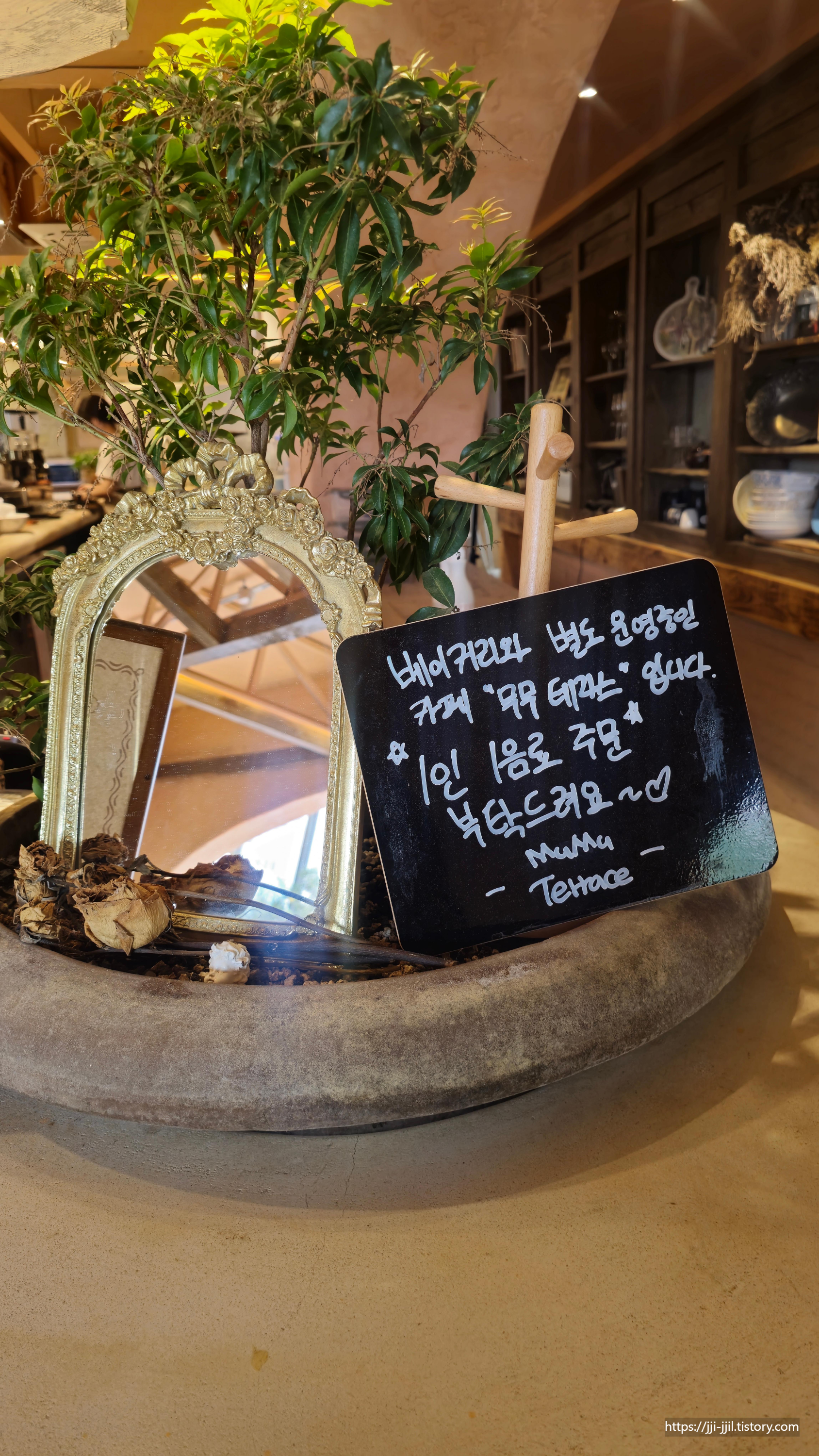 베이커리와 별개로 운영되어서 1인 1음료 주문을 해달라고 합니다.